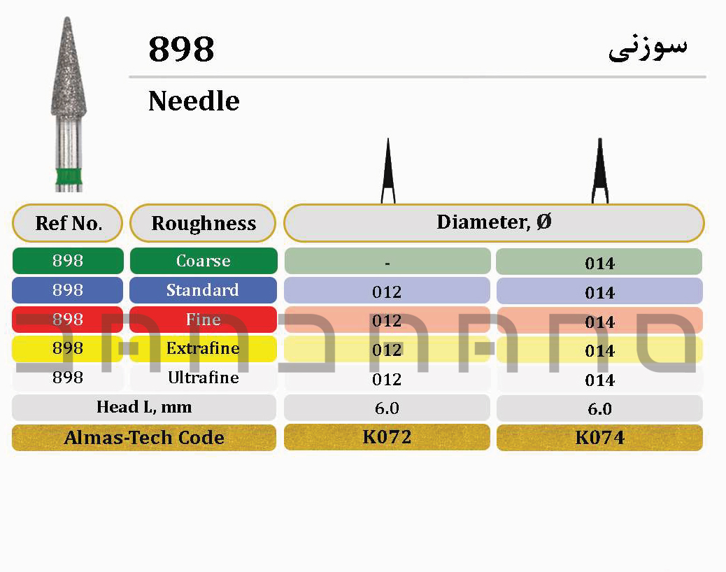 فرز سوزنی (Needle/Flame Bur) 898 الماس تک