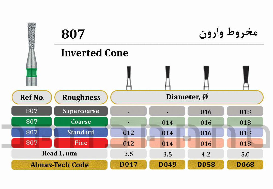 فرز مخروطی- اینورتد (Long Inverted Cone) 807 الماس تک